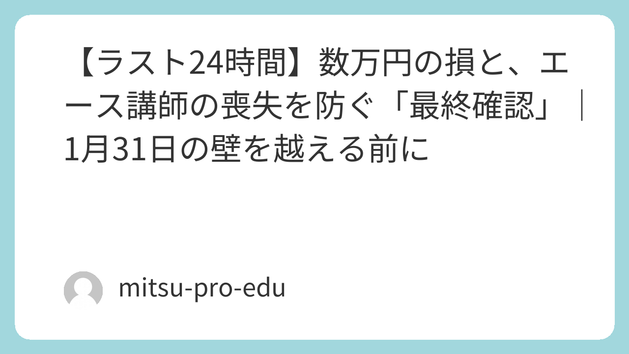 1月30日、金曜日。いよいよ、1月31日という運命のデッドラインまで、残り24時間を切りました。今日は、15年という歳月を教育の現場に捧げ、5,000人以上の親子の「決断」とその後の「結果」をすべて見届けてきた私から、最後にして、最も重要なメッセージをお送りします。