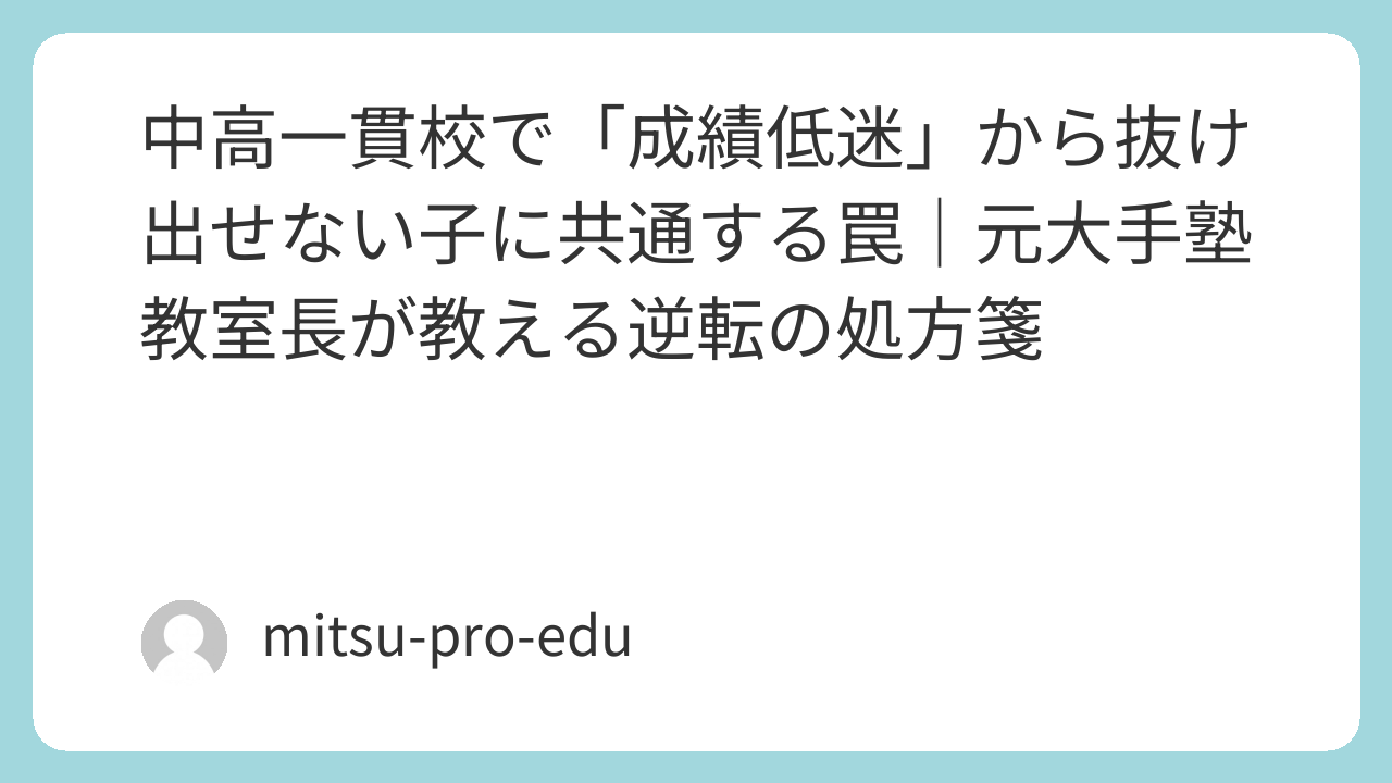 現在、ありがたいことに私のブログは、GoogleやYahoo!の検索において「元大手塾教室長」というキーワードで1位をいただいております。毎日、日本中の中高一貫校に通うお子さんの親御さんから、切実な相談が届きます。その相談の9割は、中学受験という過酷な戦いを勝ち抜いたはずの我が子が、入学後に「成績低迷」という出口のないトンネルに迷い込んでしまったという内容です。