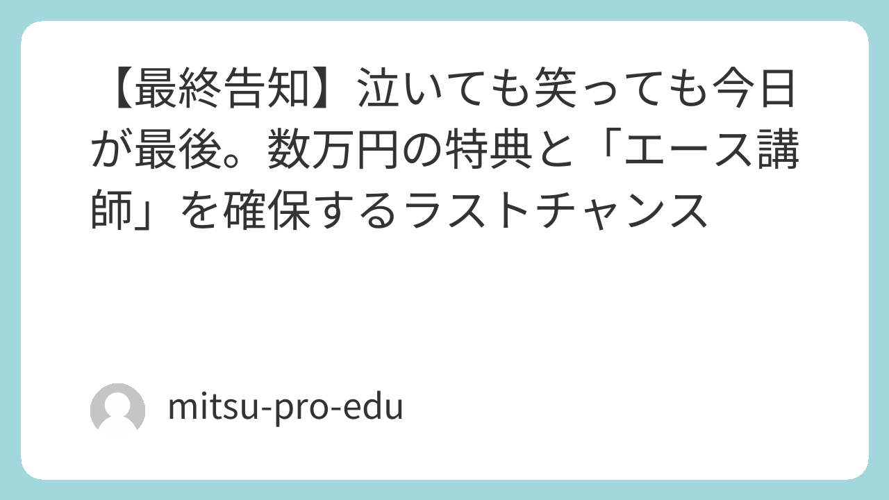 世界一のブロガーとしての視点でお話ししましょう。多くの人は「情報」を得て満足し、行動せずに終わります。しかし、成功を掴み取る一握りの人々は、常に「期限」を最優先します。この記事を閉じ、明日になったとき、今日の特典も、エース講師の枠も、すべては「過去のもの」になります。