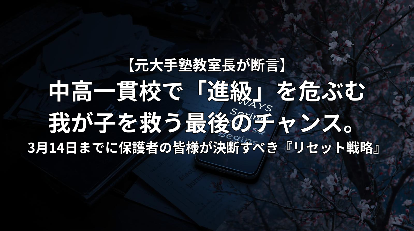 【元大手塾教室長が断言】中高一貫校で「進級」を危ぶむ我が子を救う最後のチャンス。3月14日までに保護者の皆様が決断すべき『リセット戦略』