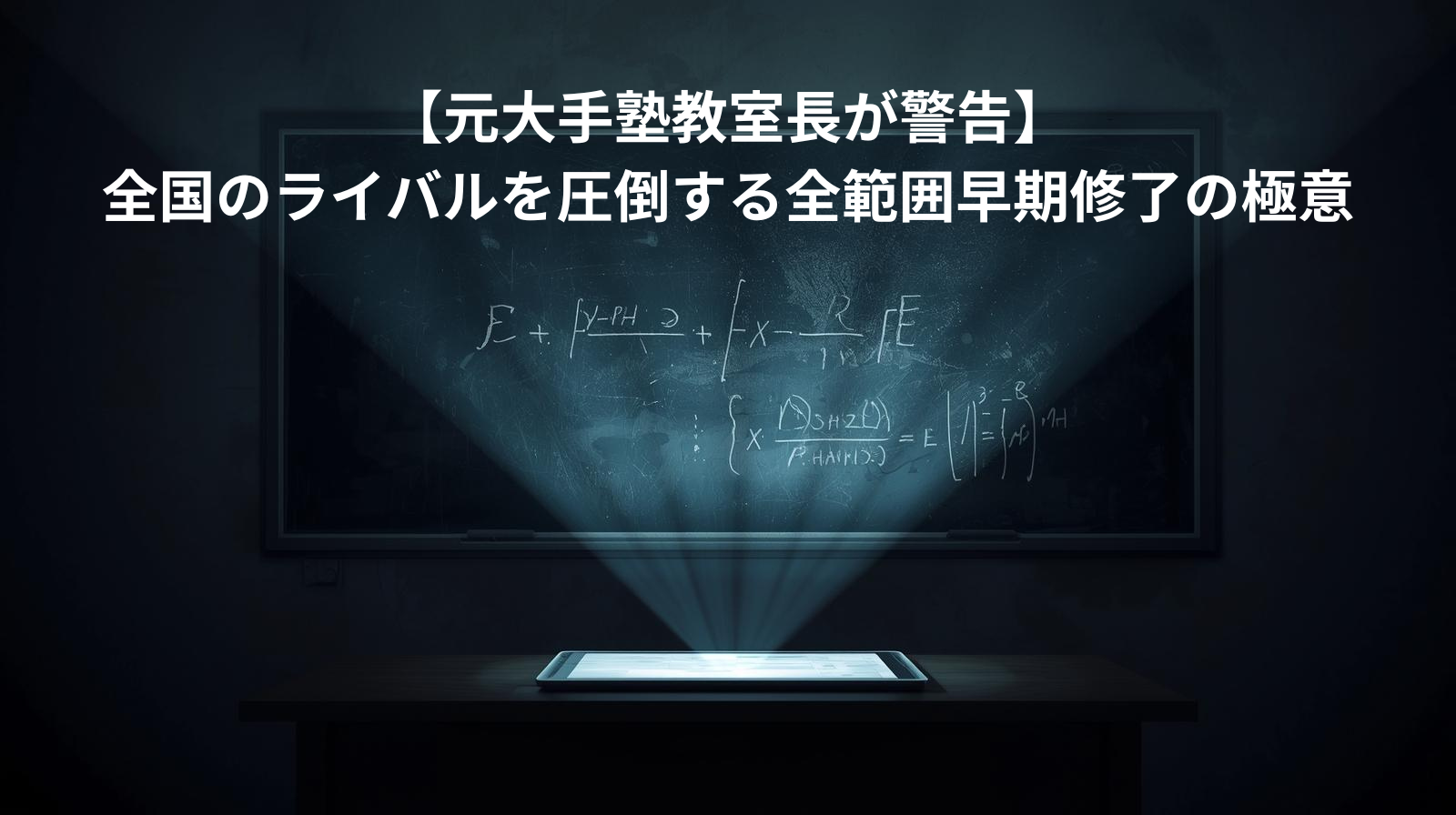 では、この絶望的な時間差というハンデを覆し、全国の猛者たちと対等以上に渡り合い、志望校合格という果実を確実にもぎ取るためには、一体どのようなアプローチが必要なのでしょうか。何千人もの逆転合格を演出してきた私の視点からすると、答えは極めてシンプルです。出題される全範囲の学習を、学校のペースとは完全に切り離し、自らの意思と戦略によって「圧倒的なスピードで先取りし、早期に修了させること」に他なりません。学校の授業は、あくまで自分がすでに独学で終わらせた範囲の「復習の場」として利用するのです。新しい知識のインプットは、学校のカリキュラムを待つことなく、自分自身の力でどんどん先に進めていかなければなりません。