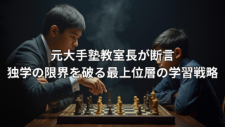 真面目に勉強しているのに最難関の壁を越えられないお子様へ。1万人を導いた元大手塾教室長が、独学や地域の塾では決して得られない「本物の基準値」の重要性を解説します。圧倒的な格上を隣に置くことでお子様の脳を覚醒させる、究極の逆転戦略を公開します。